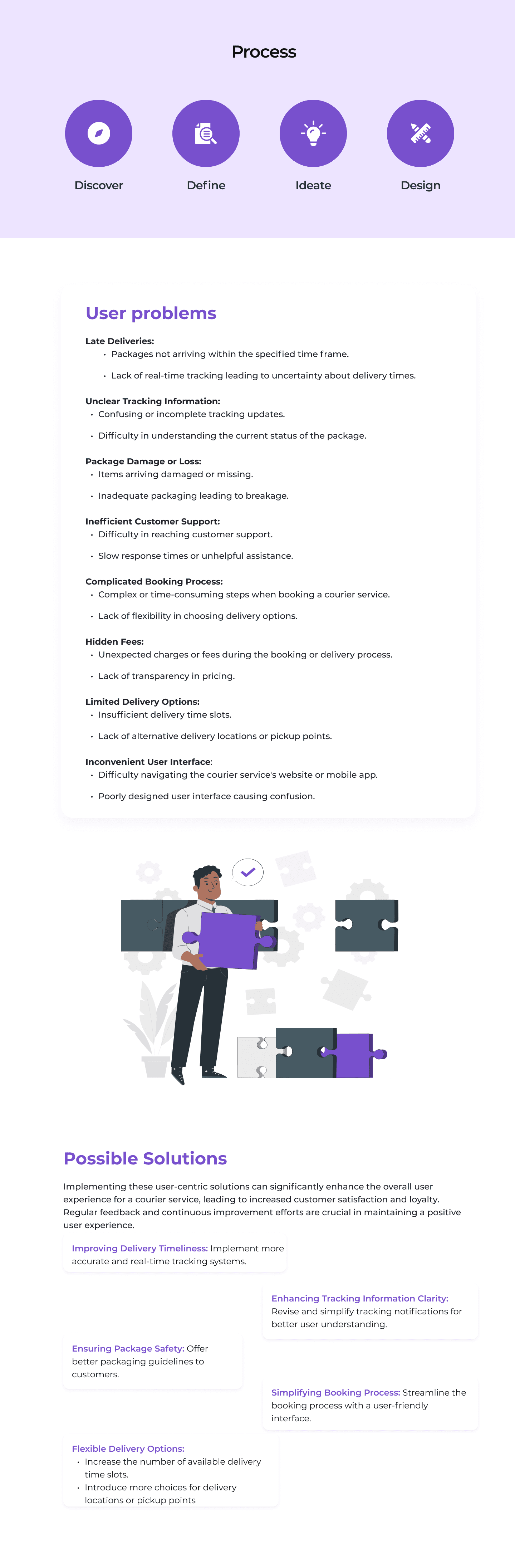 The courier service currently faces challenges in meeting delivery deadlines consistently. Instances of delayed deliveries and misrouted packages have become frequent, leading to customer dissatisfaction. The need for a streamlined and reliable system to ensure timely and accurate deliveries is evident.