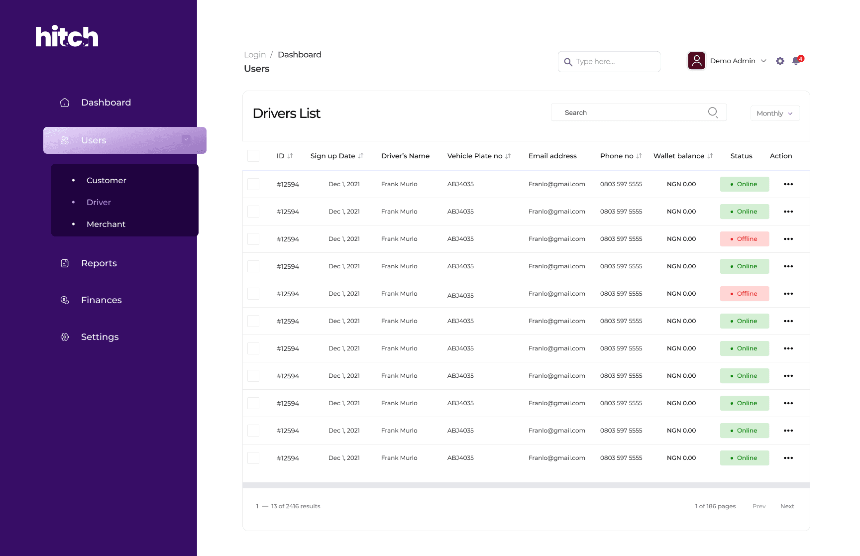 Real-time Tracking: An admin dashboard allows logistics companies to track shipments, vehicles, and